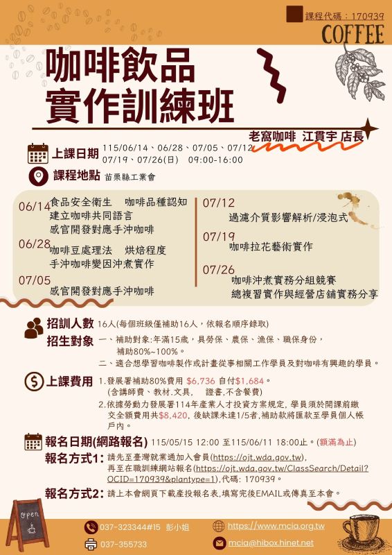 咖啡飲品實作訓練班