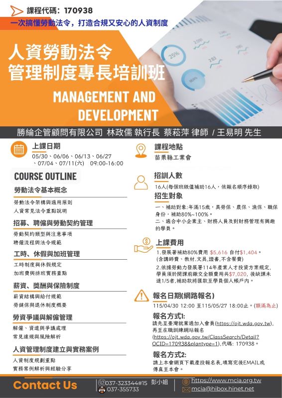 人資勞動法令管理制度專長培訓班